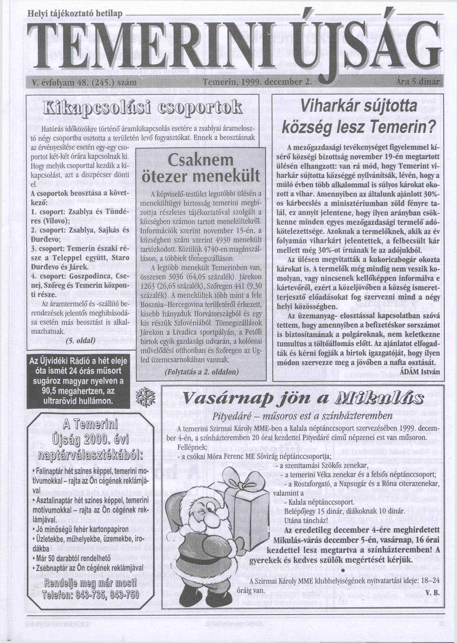 Temerini Újság, 5. évf. 1999. december 2. 48. sz.