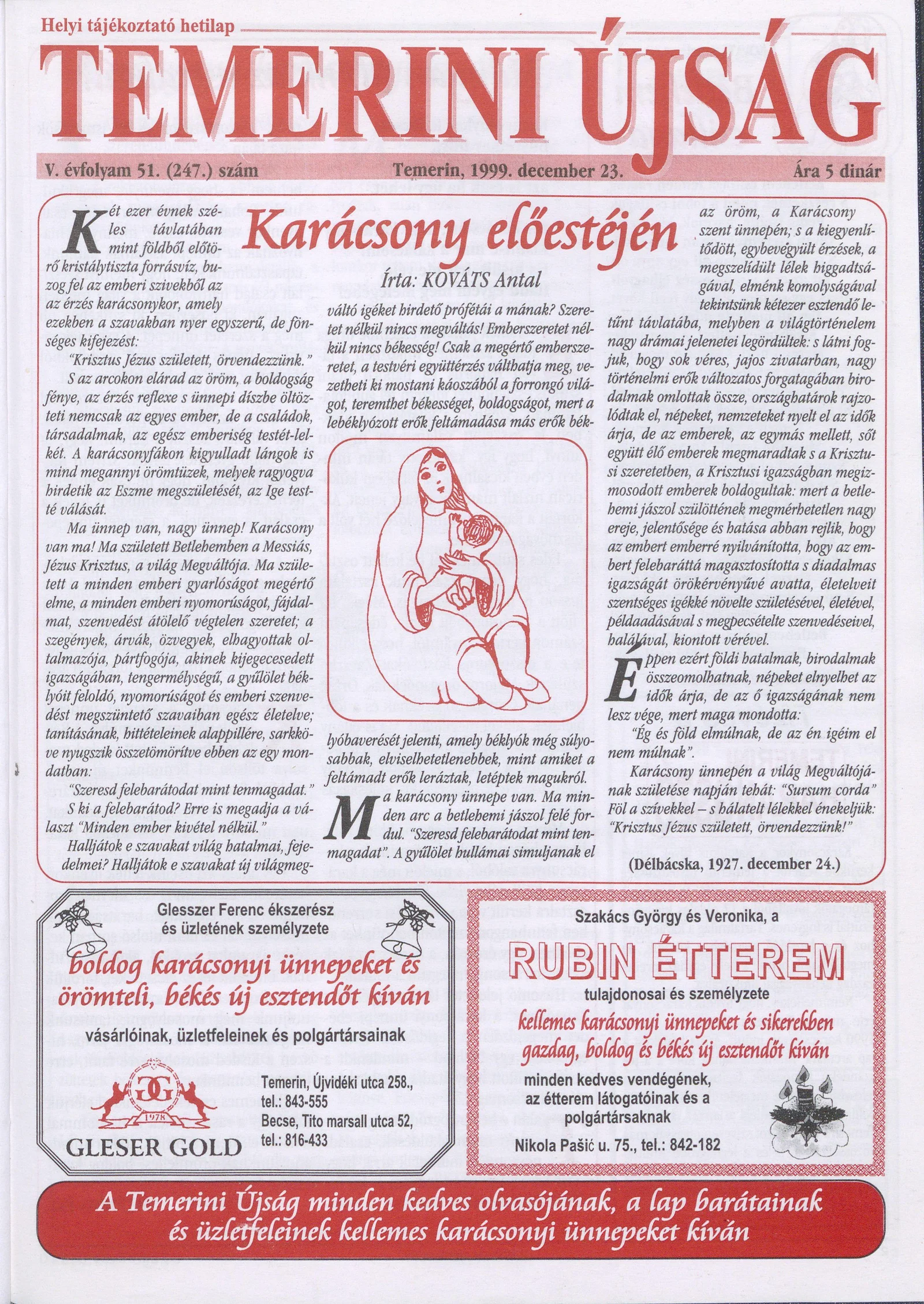 Temerini Újság, 5. évf. 1999. december 23. 51. sz.