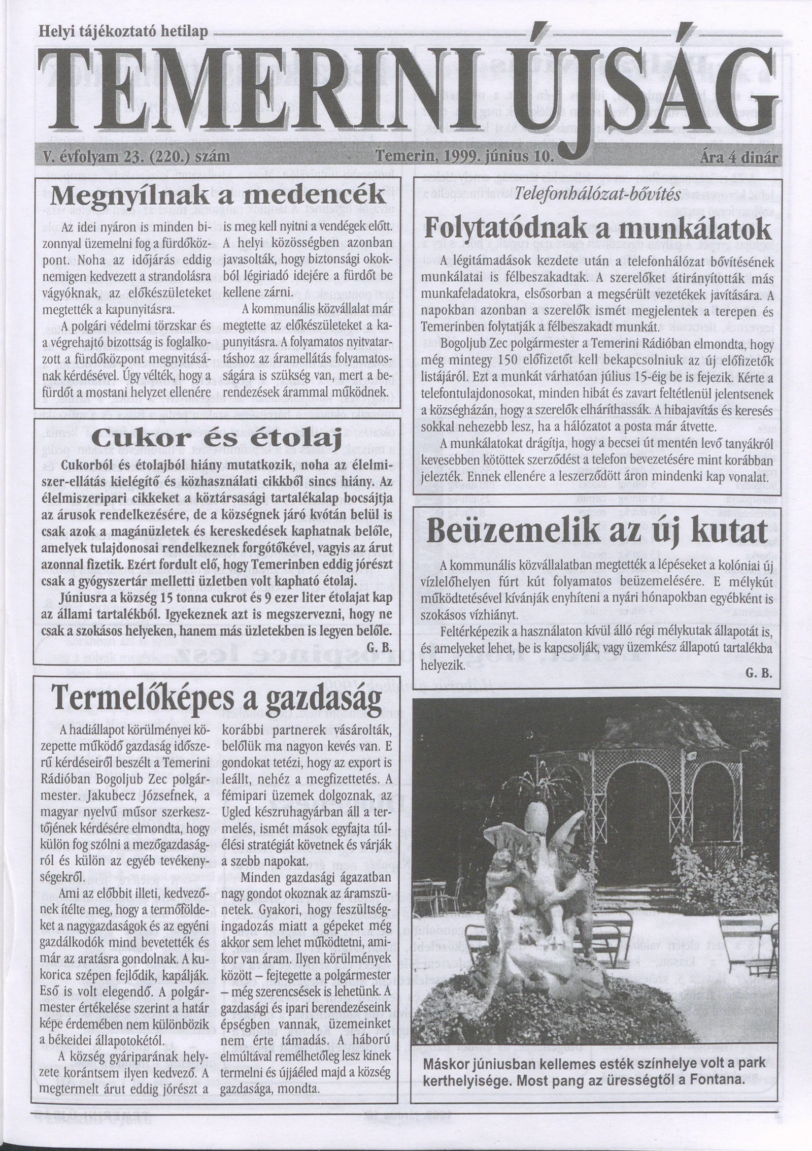 Temerini Újság, 5. évf. 1999. június 10. 23. sz.