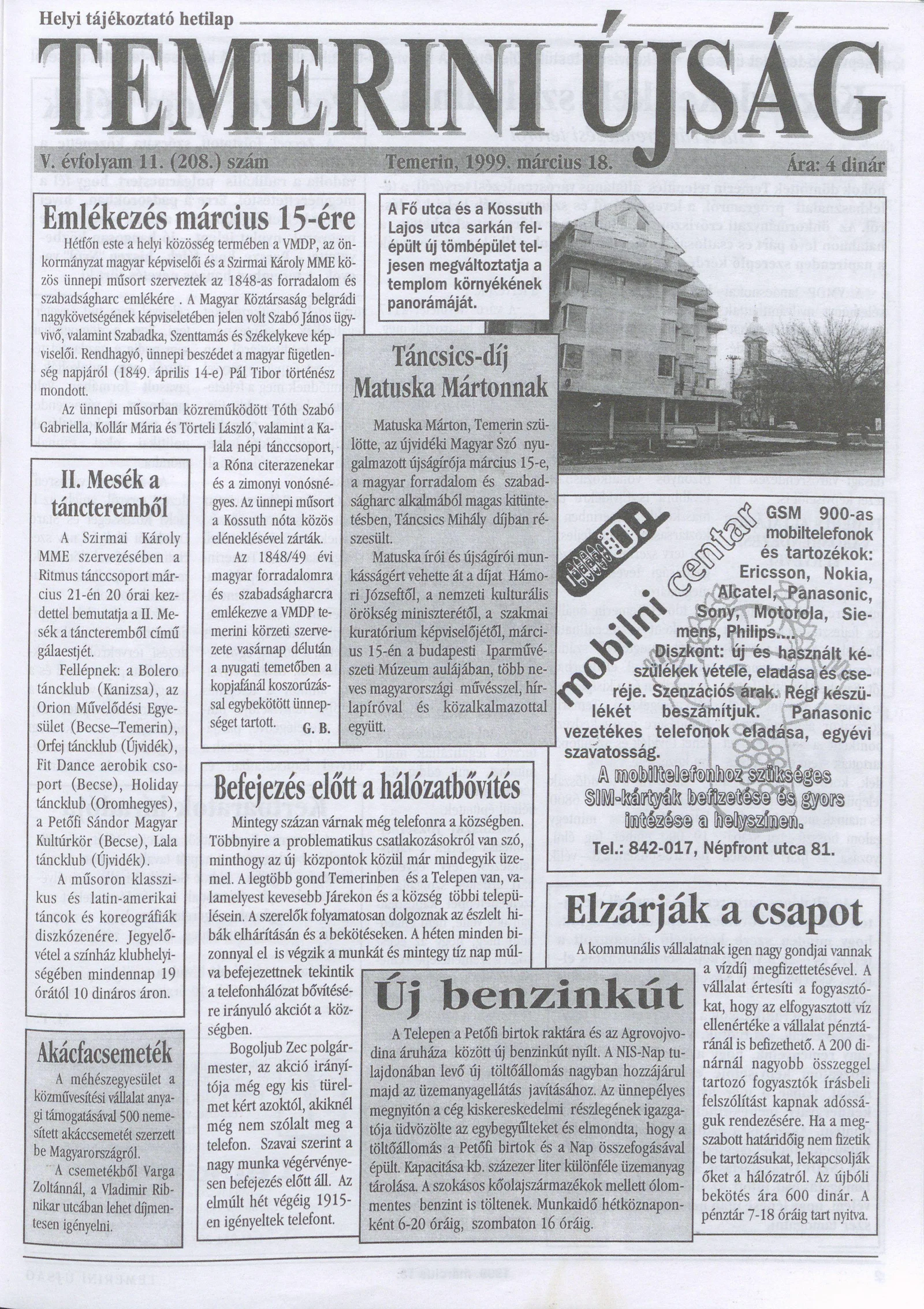 Temerini Újság, 5. évf. 1999. március 18. 11. sz.