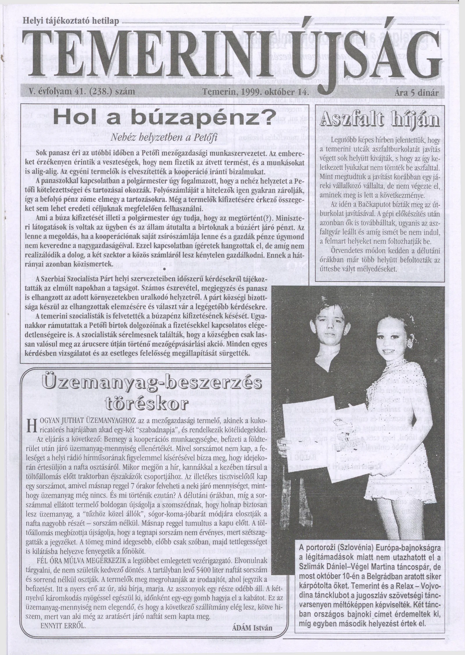 Temerini Újság, 5. évf. 1999. október 14. 41. sz.