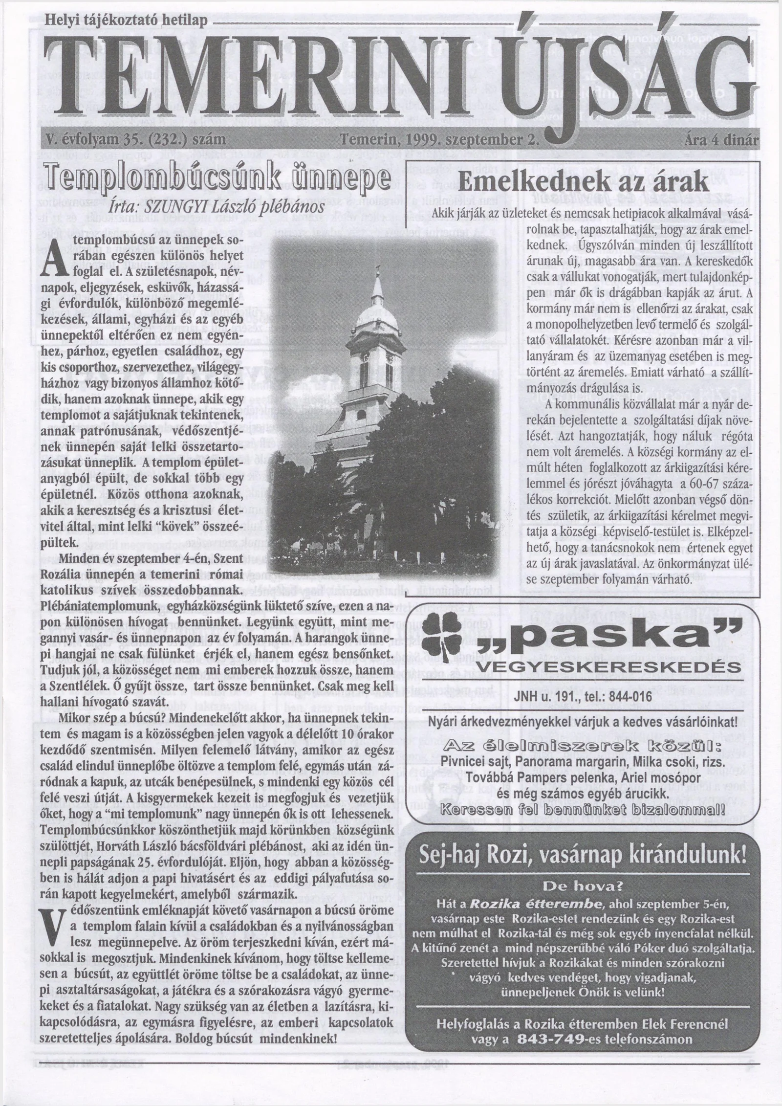 Temerini Újság, 5. évf. 1999. szeptember 2. 35. sz.