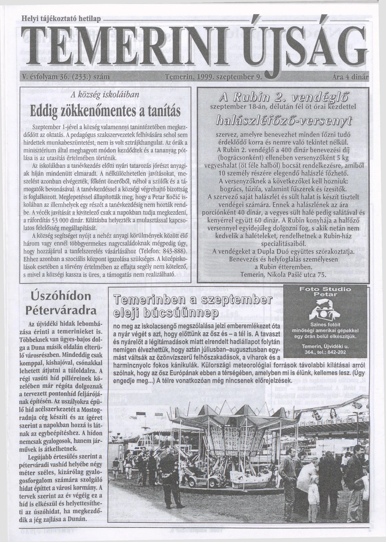 Temerini Újság, 5. évf. 1999. szeptember 9. 36. sz.