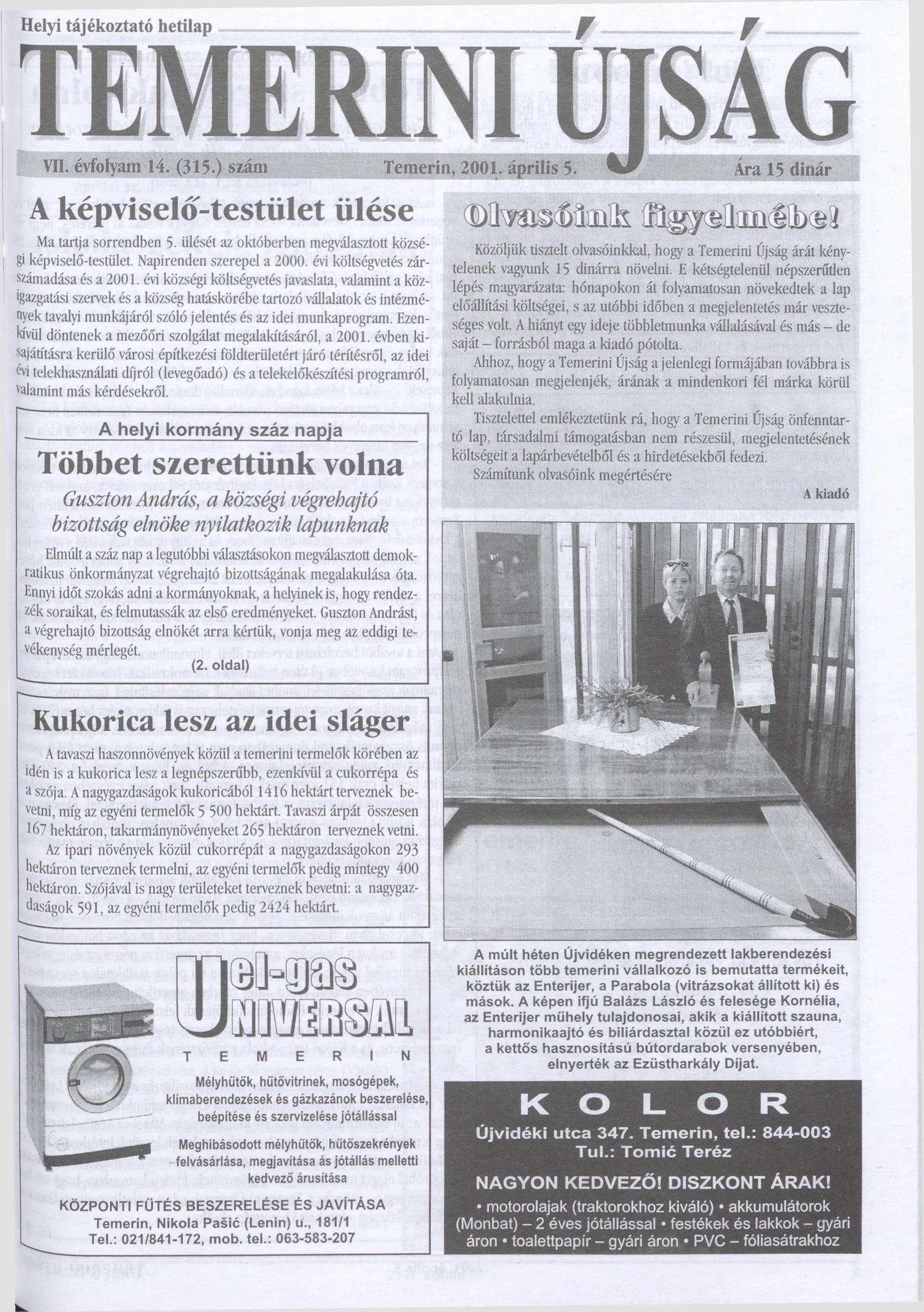 Temerini Újság, 7. évf. 2001. április 5. 14. sz.