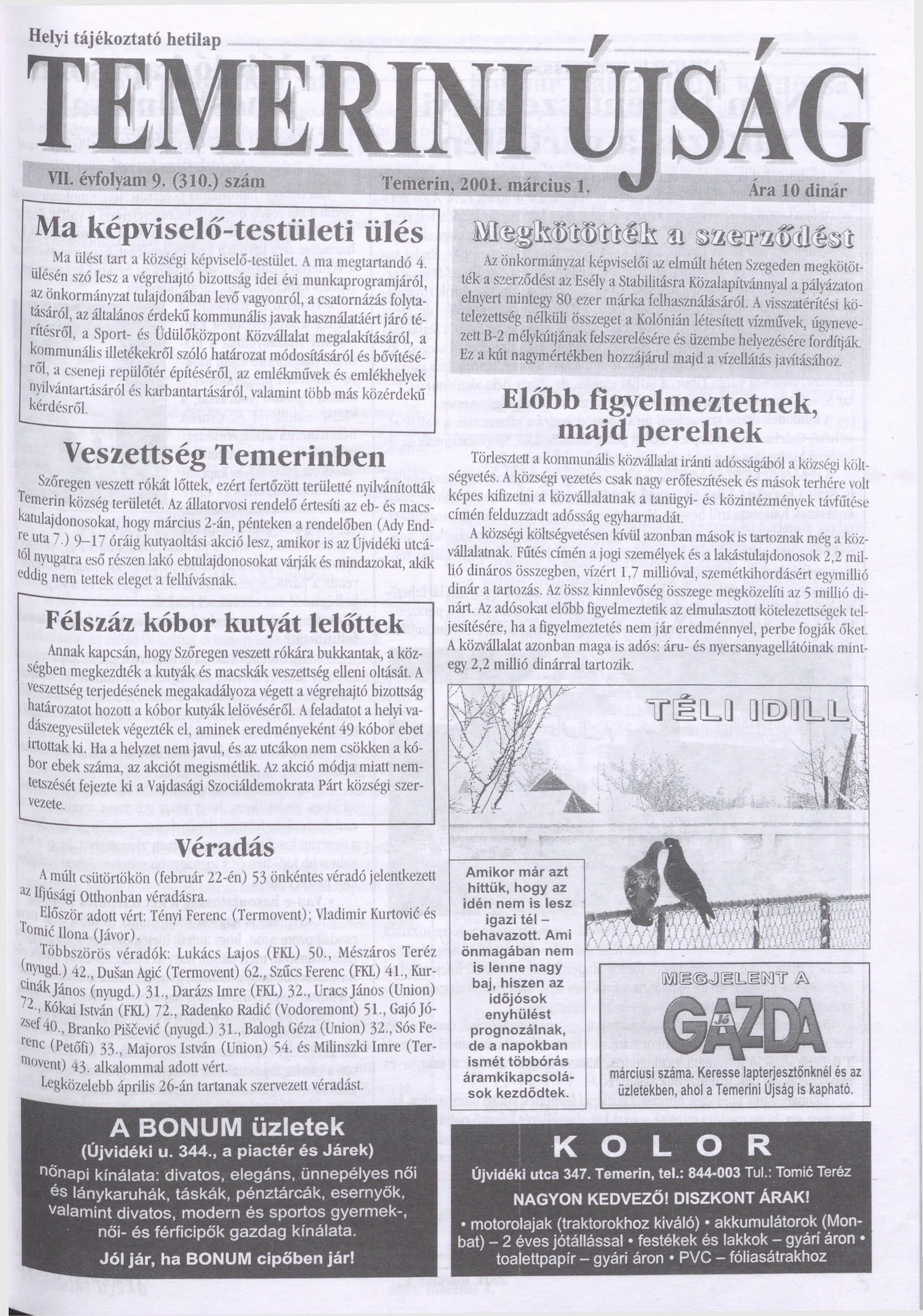 Temerini Újság, 7. évf. 2001. március 1. 9. sz.