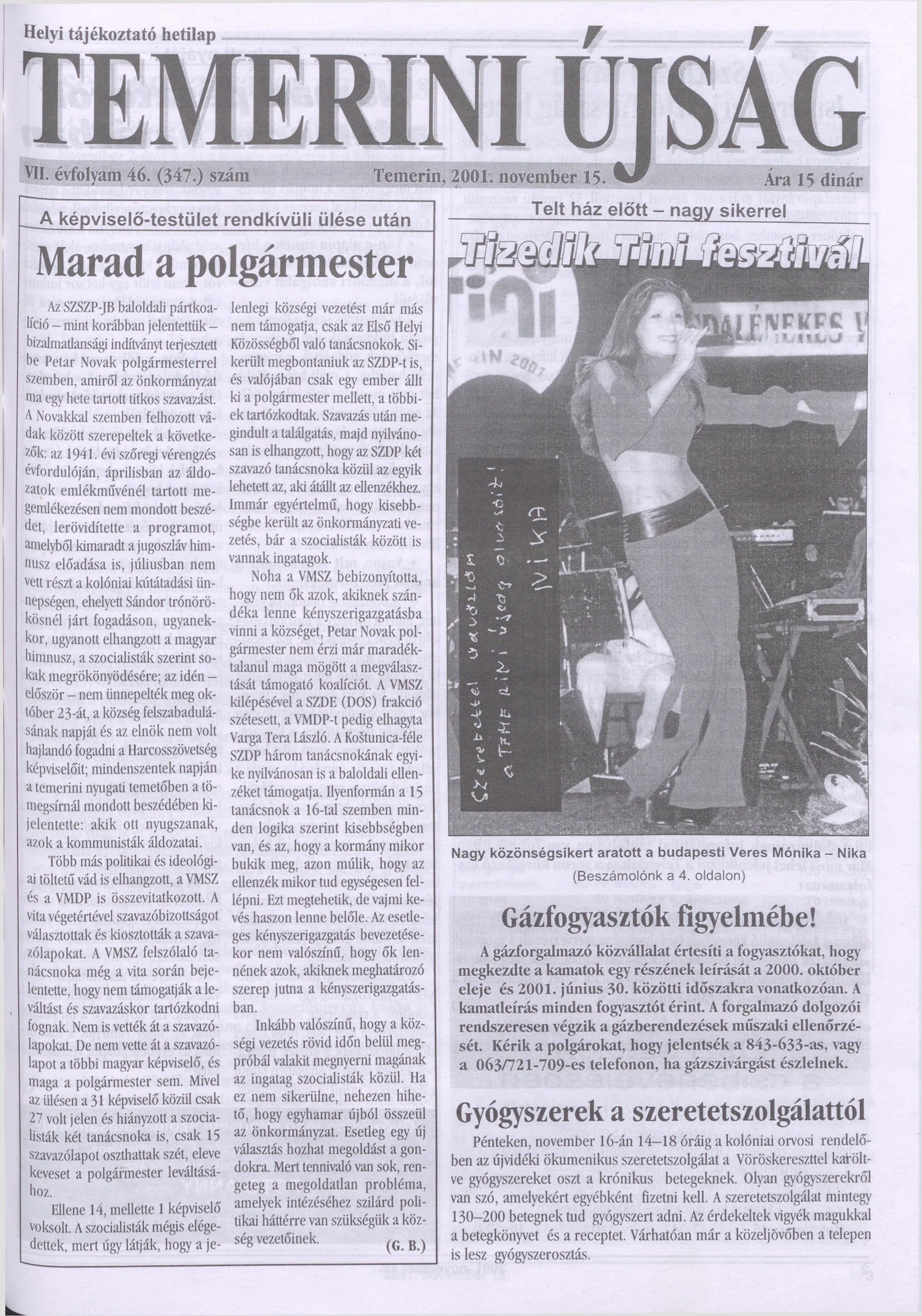 Temerini Újság, 7. évf. 2001. november 15. 46. sz.