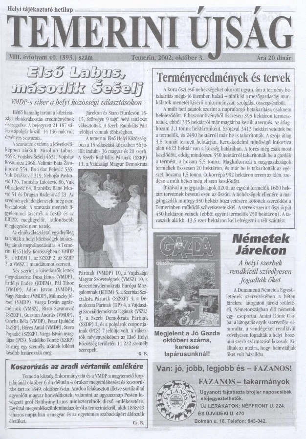 Temerini Újság, 8. évf. 2002. október 3. 40. sz.