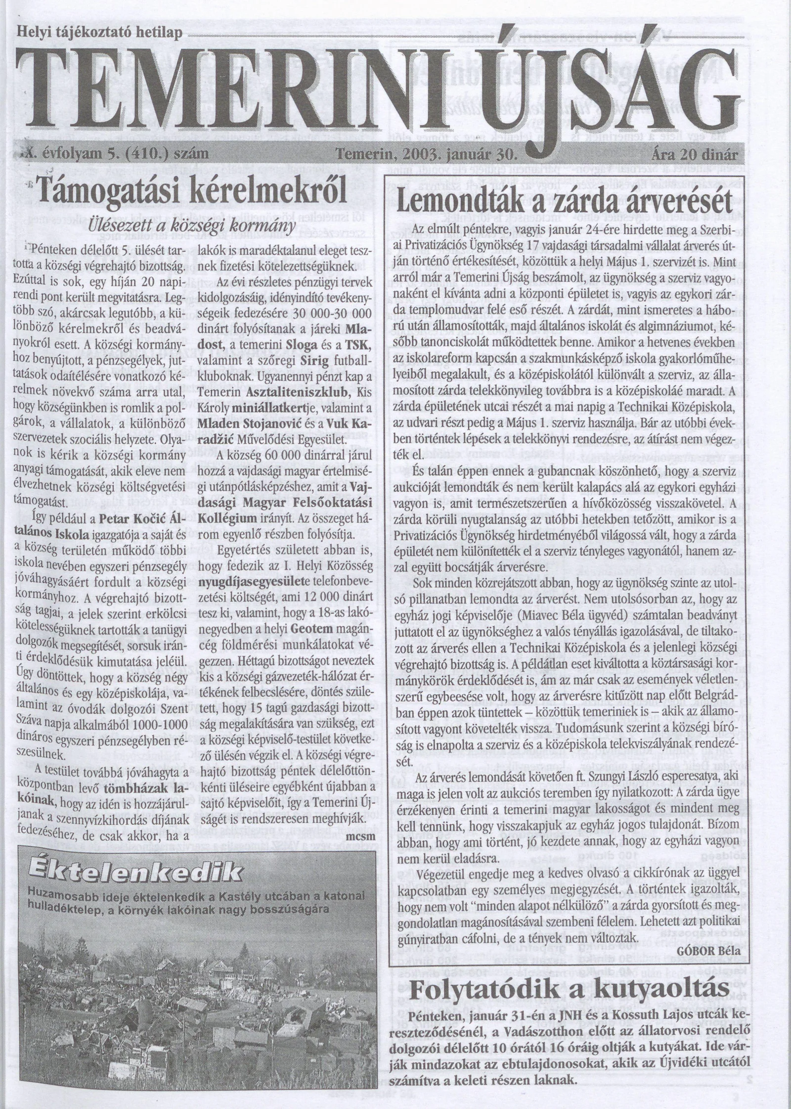 Temerini Újság, 9. évf. 2003. január 30. 5. sz.