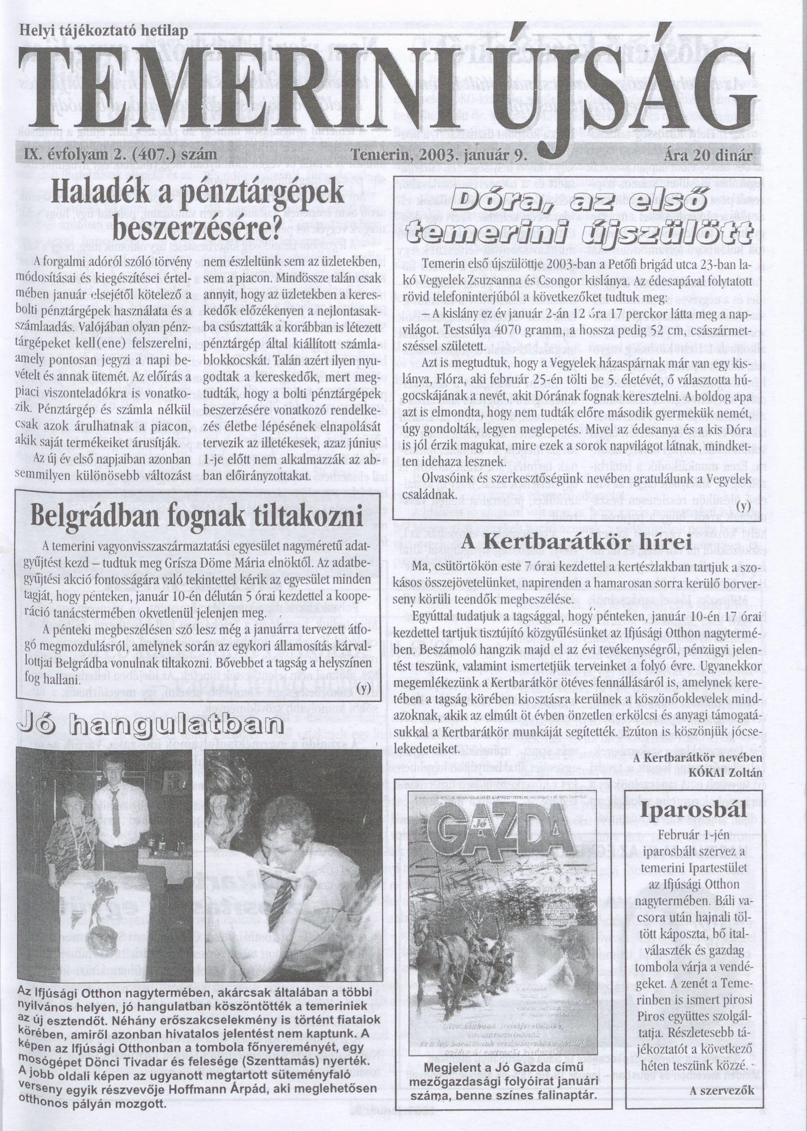 Temerini Újság, 9. évf. 2003. január 9. 2. sz.