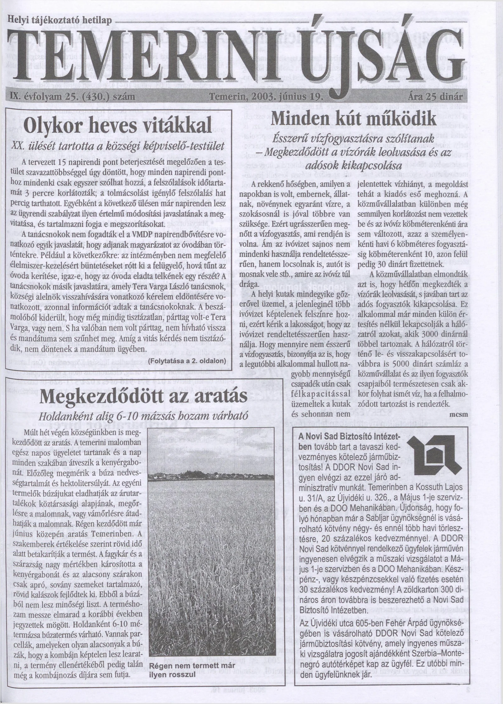 Temerini Újság, 9. évf. 2003. június 19. 25. sz.