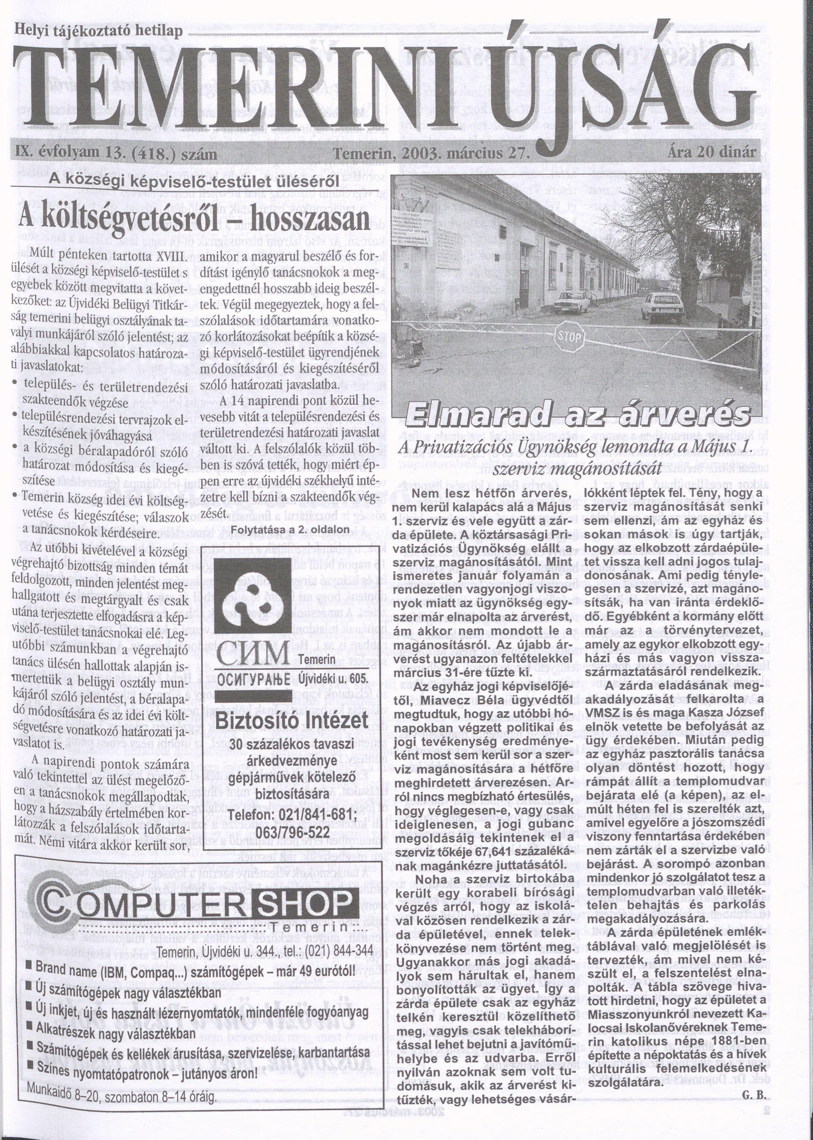 Temerini Újság, 9. évf. 2003. március 27. 13. sz.