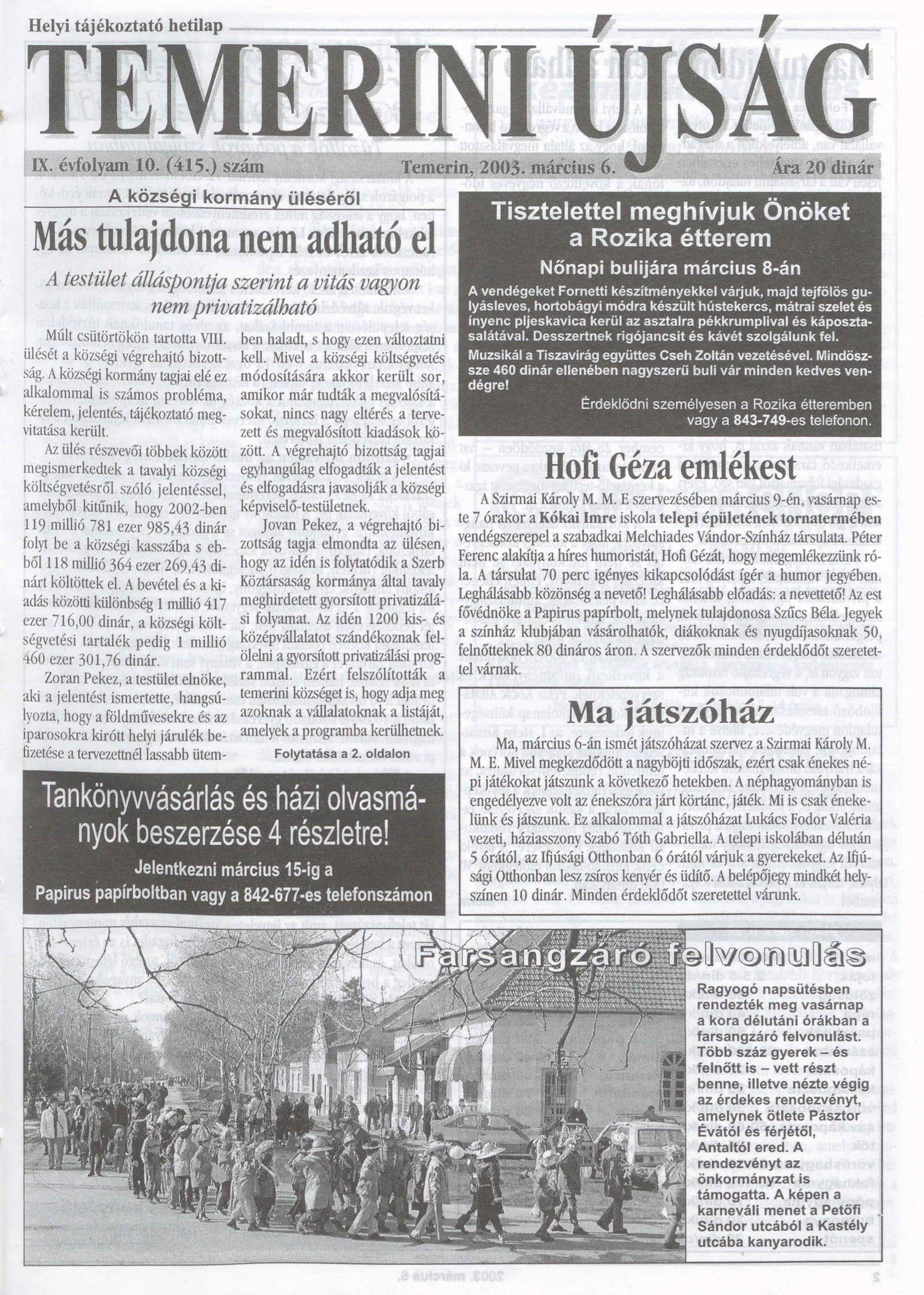 Temerini Újság, 9. évf. 2003. március 6. 10. sz.