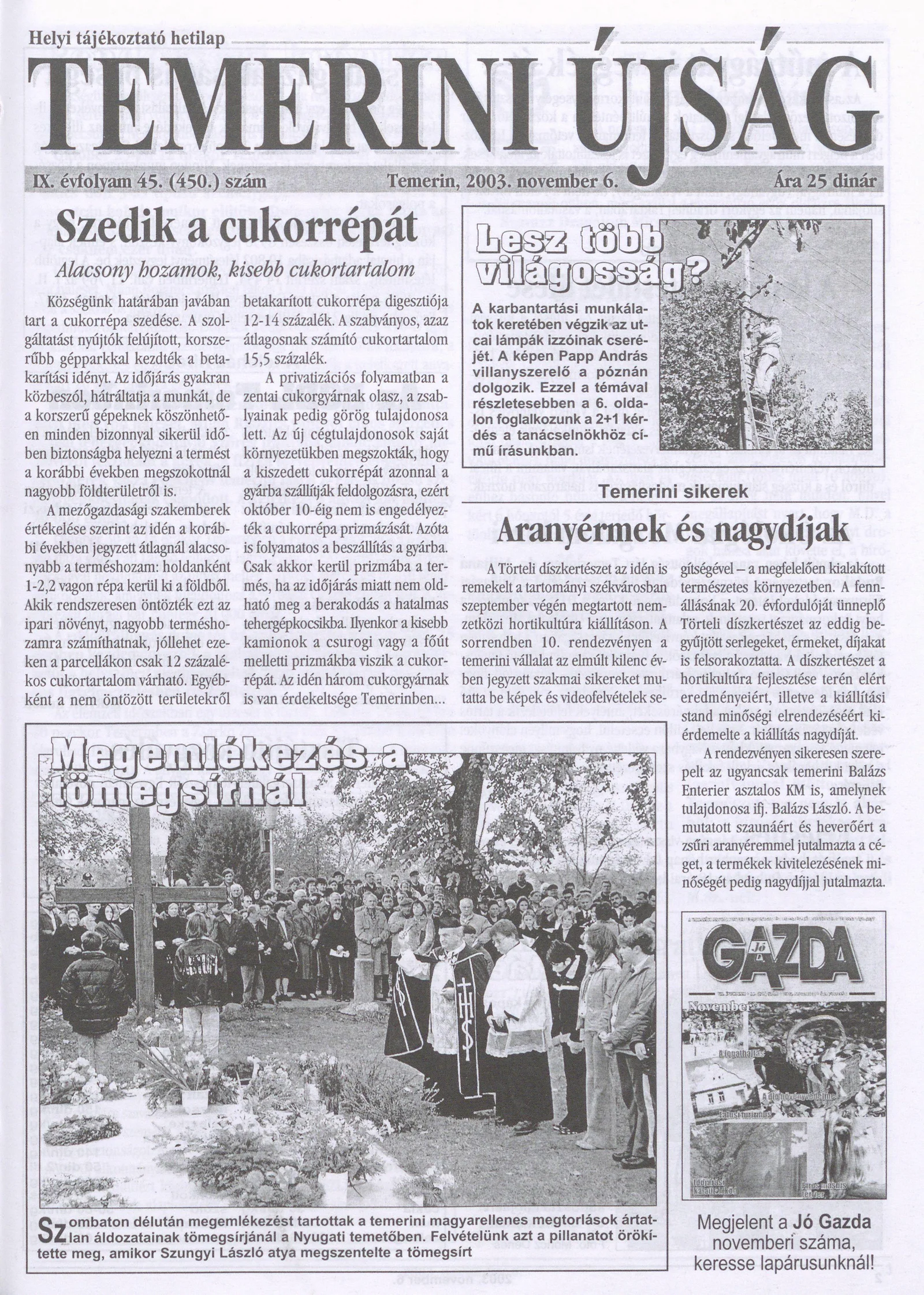 Temerini Újság, 9. évf. 2003. november 6. 45. sz.