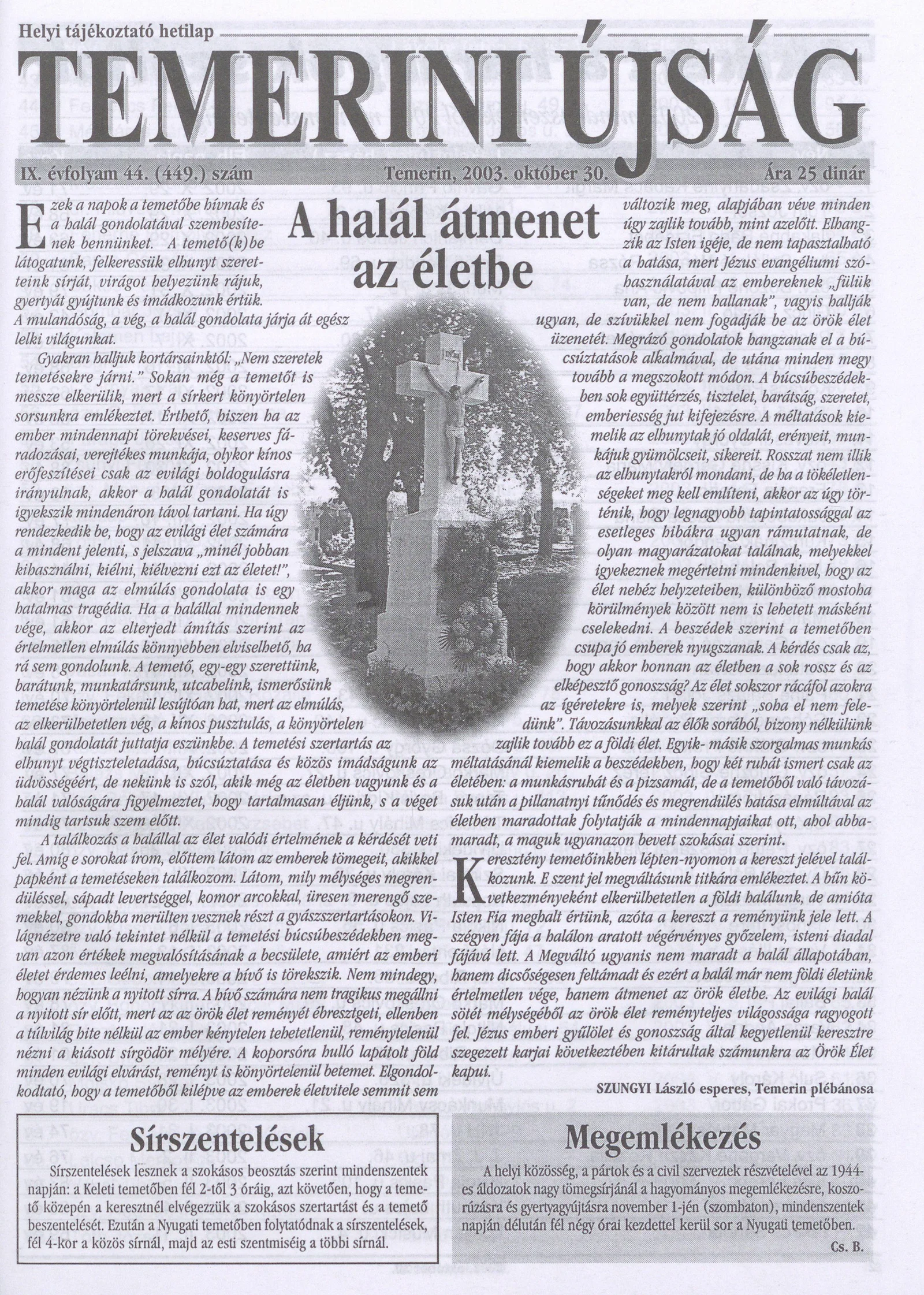 Temerini Újság, 9. évf. 2003. október 30. 44. sz.