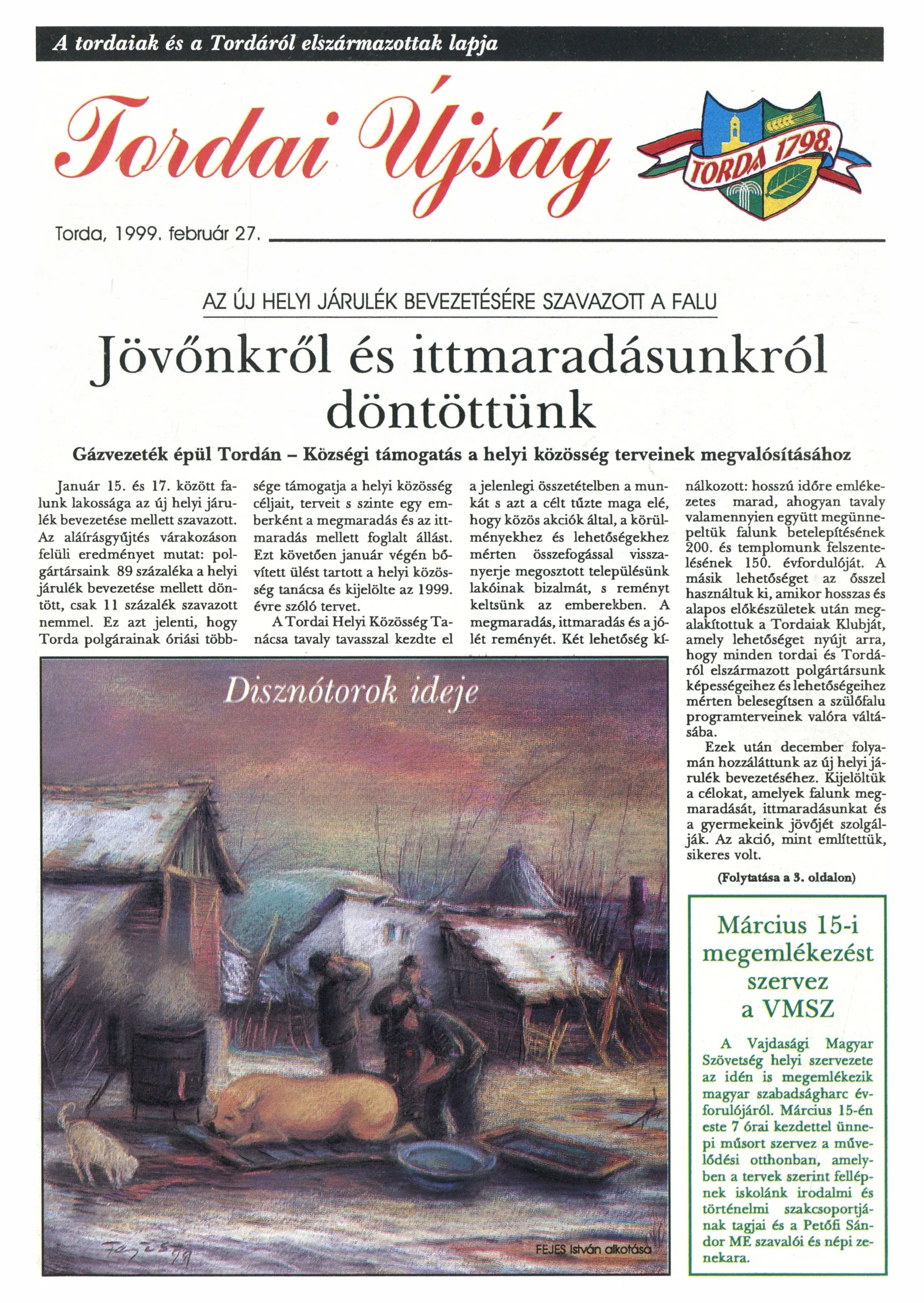 Tordai Újság, 2. évf. 1999. február 27. 1. sz. 1–12. oldal