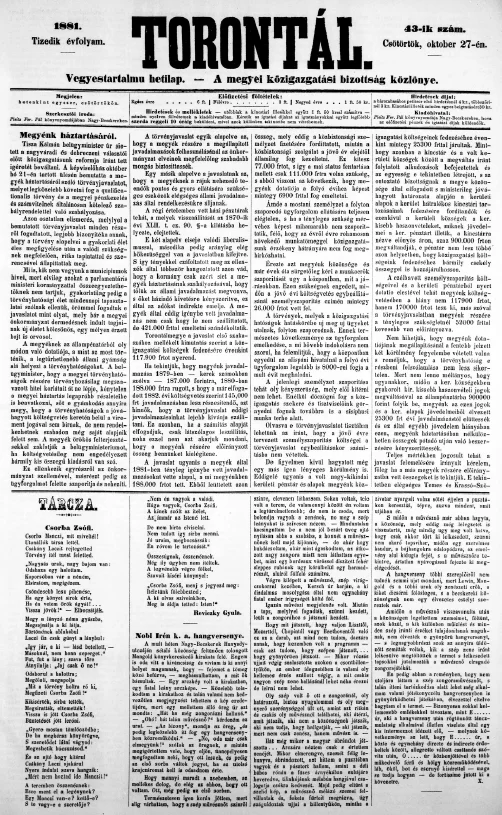 Torontál, 10. évf. 1881. október 27. 43. sz.