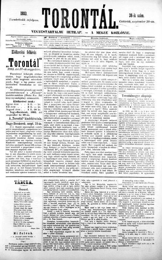 Torontál, 12. évf. 1883. szeptember 20. 38. sz.
