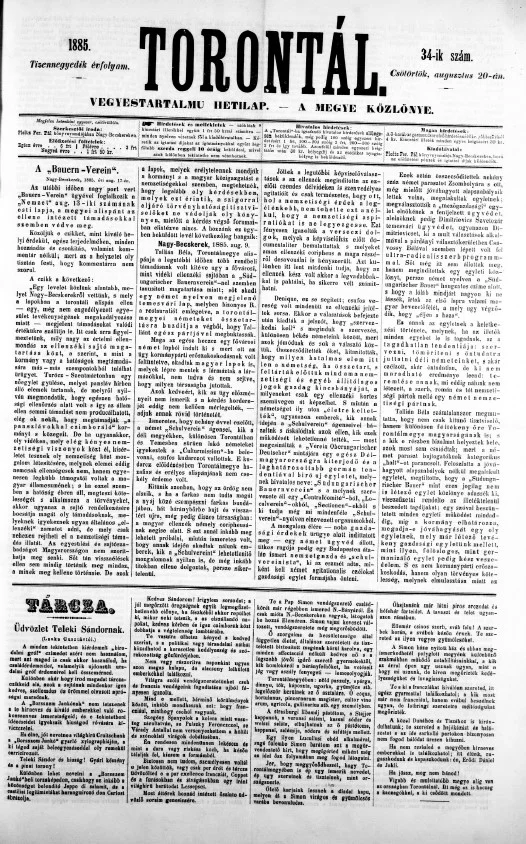 Torontál, 14. évf. 1885. augusztus 20. 34. sz.