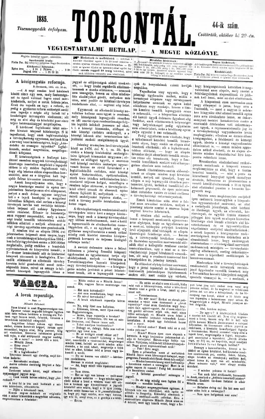 Torontál, 14. évf. 1885. október 29. 44. sz.