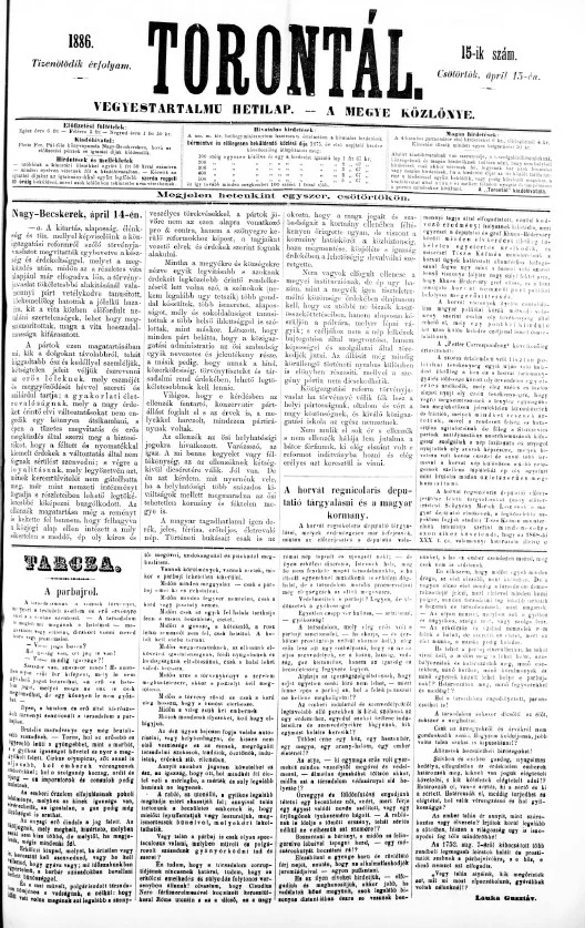 Torontál, 15. évf. 1886. április 15. 15. sz.