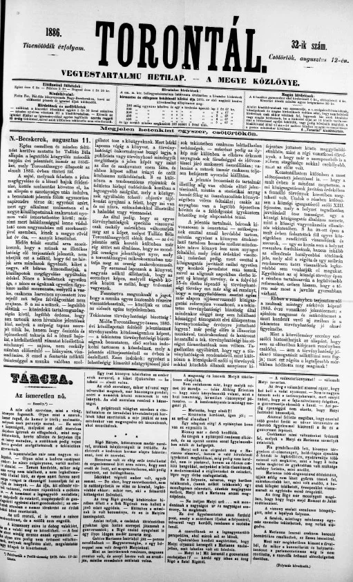 Torontál, 15. évf. 1886. augusztus 12. 32. sz.