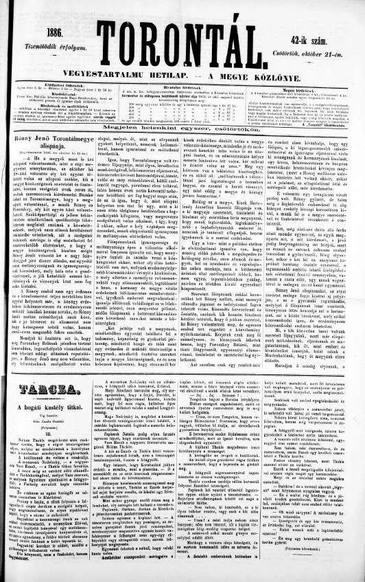 Torontál, 15. évf. 1886. október 21. 42. sz.