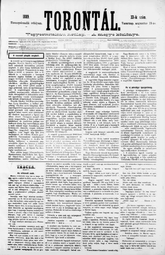 Torontál, 18. évf. 1889. augusztus 18. 33. sz.