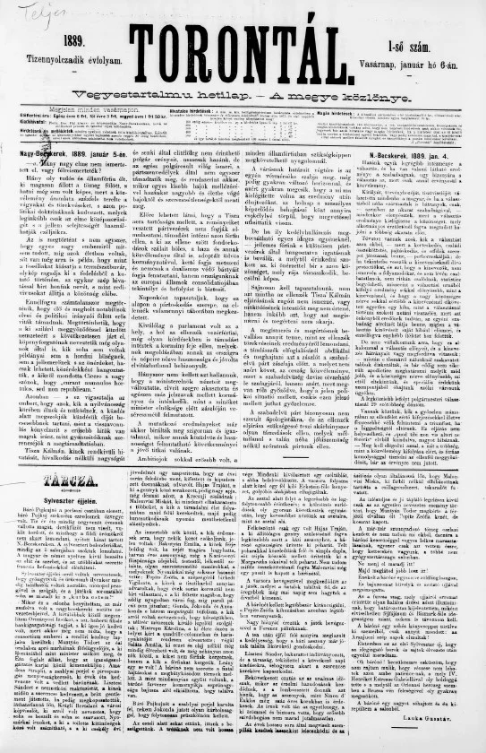 Torontál, 18. évf. 1889. január 6. 1. sz.