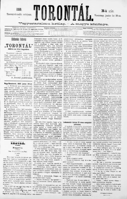 Torontál, 18. évf. 1889. június 30. 26. sz.