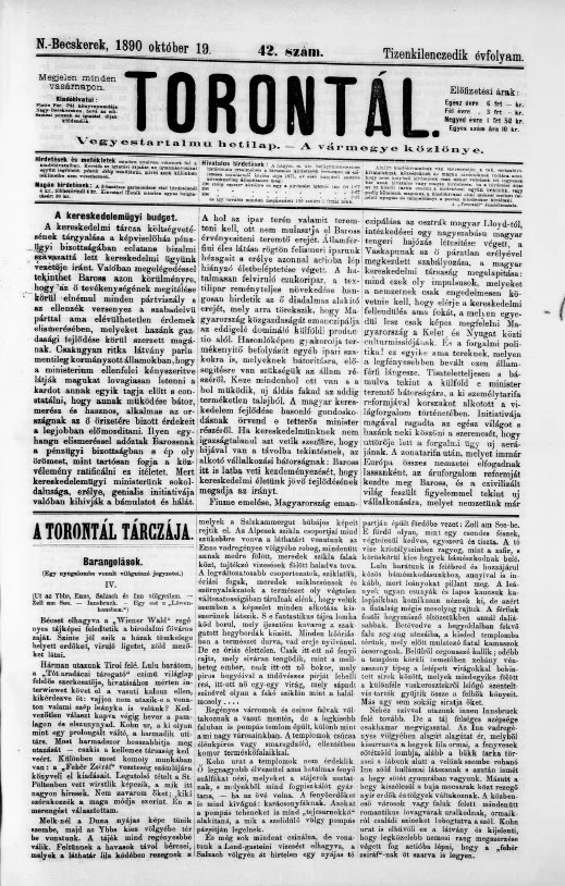 Torontál, 19. évf. 1890. október 19. 42. sz.
