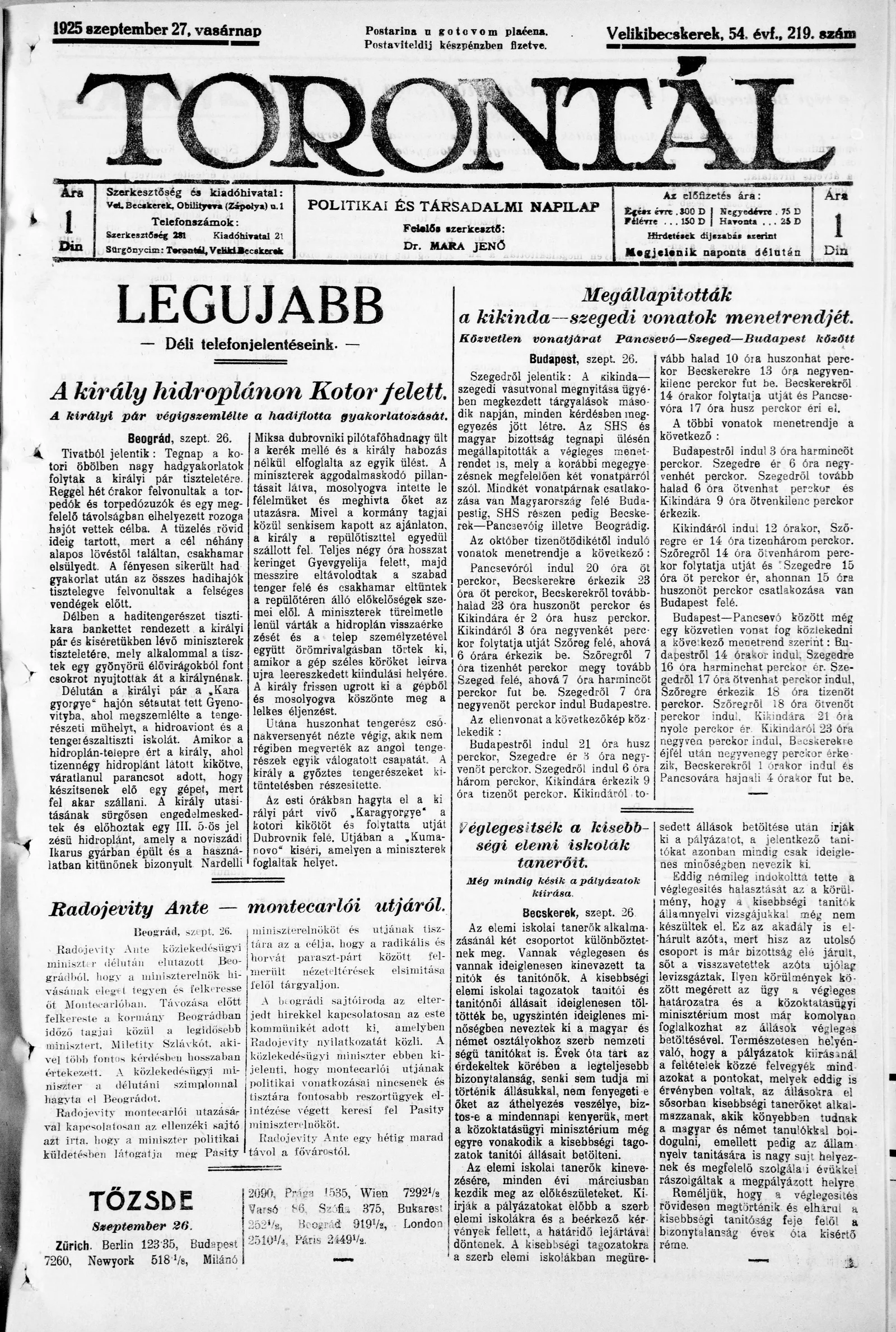 Torontál 1925. szeptember 27. 219. sz.