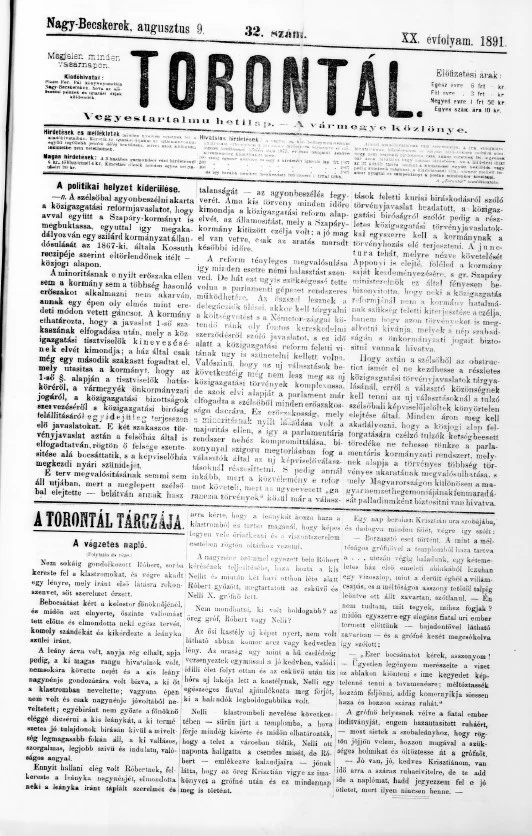 Torontál, 20. évf. 1891. augusztus 9. 32. sz.