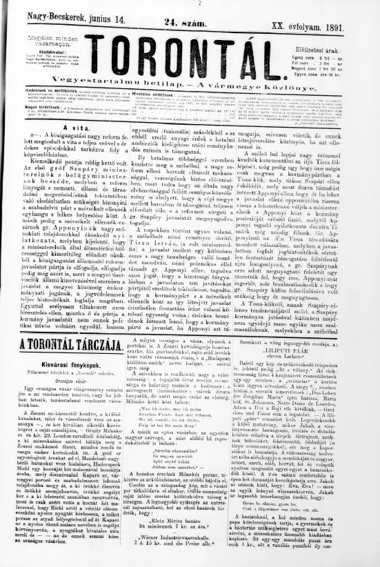 Torontál, 20. évf. 1891. június 14. 24. sz.