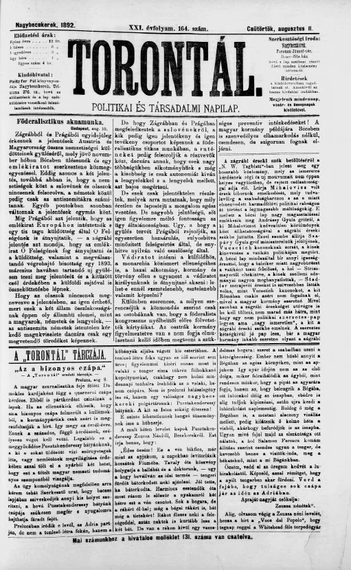 Torontál, 21. évf. 1892. augusztus 11. 164. sz.