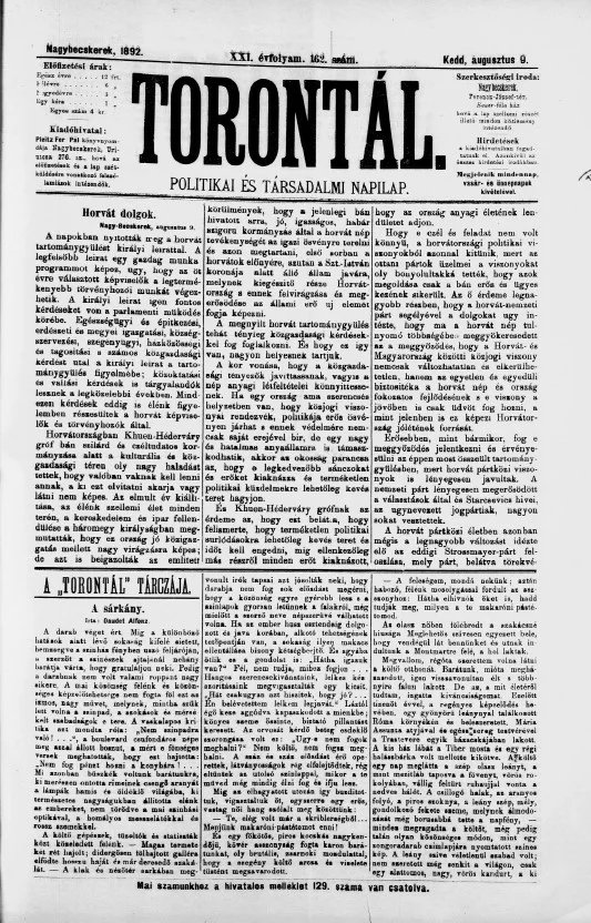 Torontál, 21. évf. 1892. augusztus 9. 162. sz.