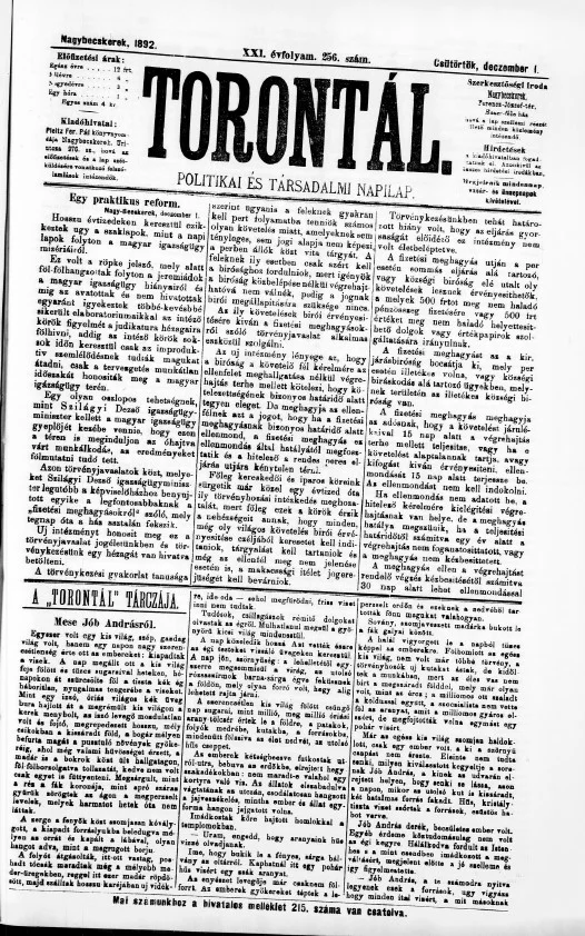Torontál, 21. évf. 1892. december 1. 256. sz.