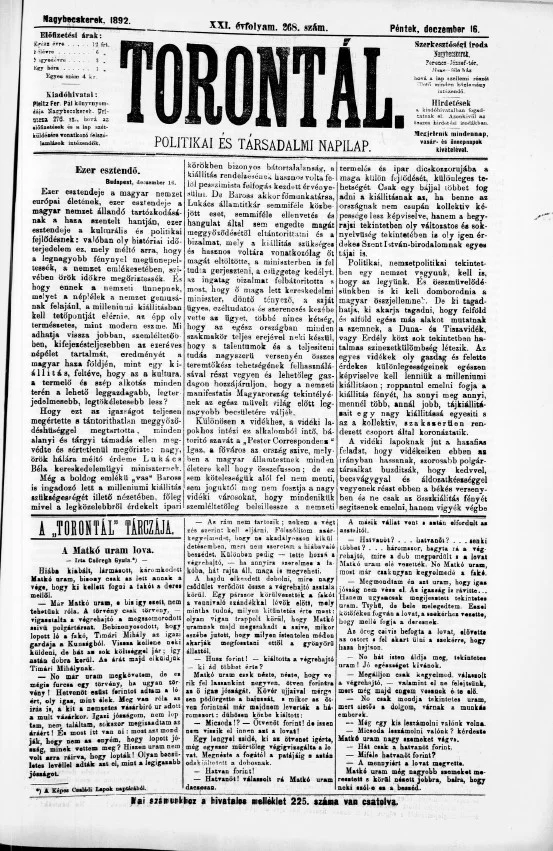 Torontál, 21. évf. 1892. december 16. 268. sz.