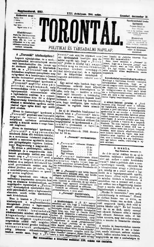 Torontál, 21. évf. 1892. december 31. 280. sz.