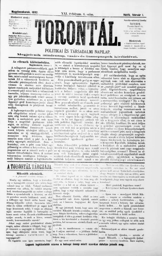 Torontál, 21. évf. 1892. február 1. 6. sz.