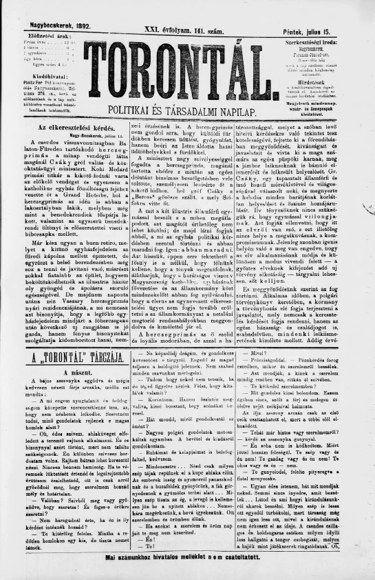 Torontál, 21. évf. 1892. július 15. 141. sz.