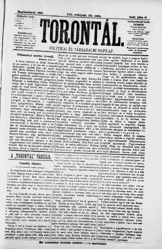 Torontál, 21. évf. 1892. július 19. 144. sz.