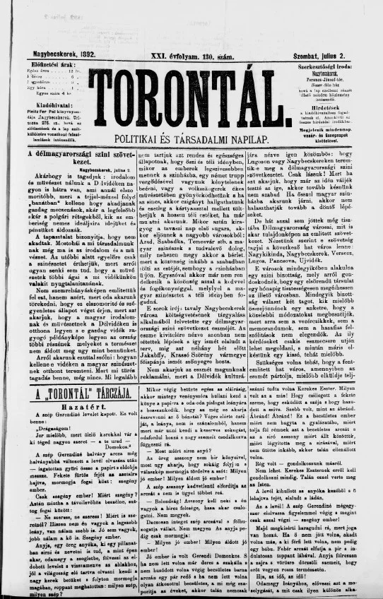 Torontál, 21. évf. 1892. július 2. 130. sz.