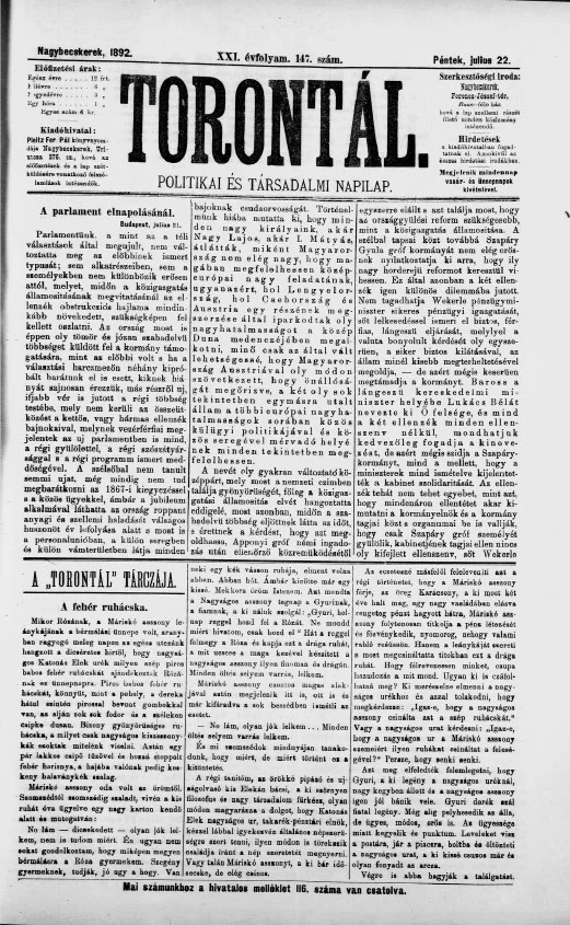 Torontál, 21. évf. 1892. július 22. 147. sz.