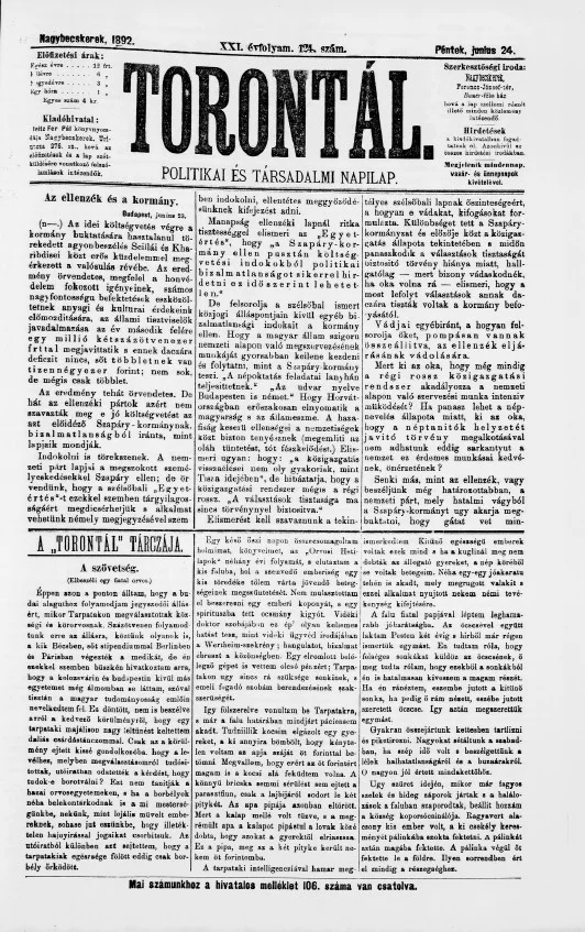 Torontál, 21. évf. 1892. június 24. 124. sz.