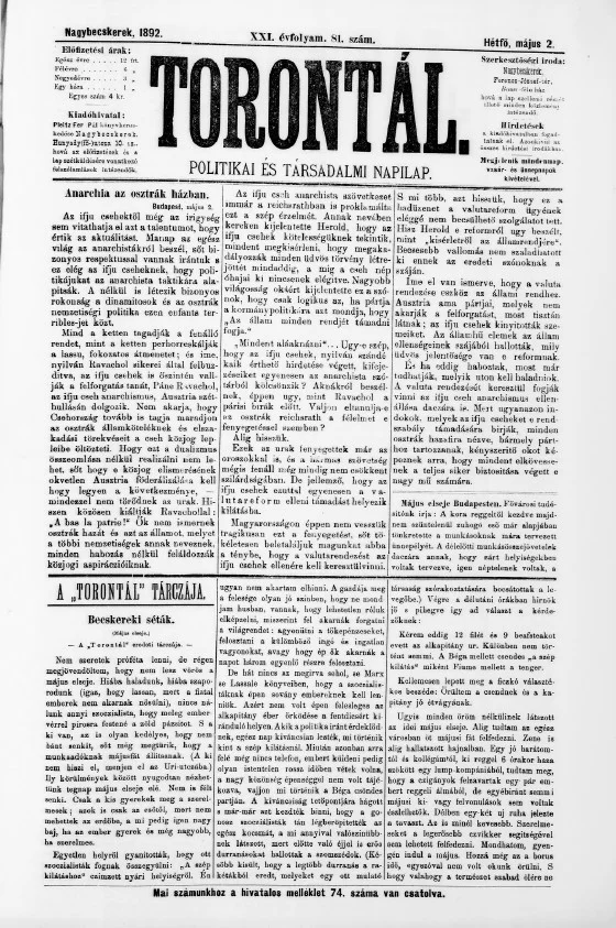 Torontál, 21. évf. 1892. május 2. 81. sz.