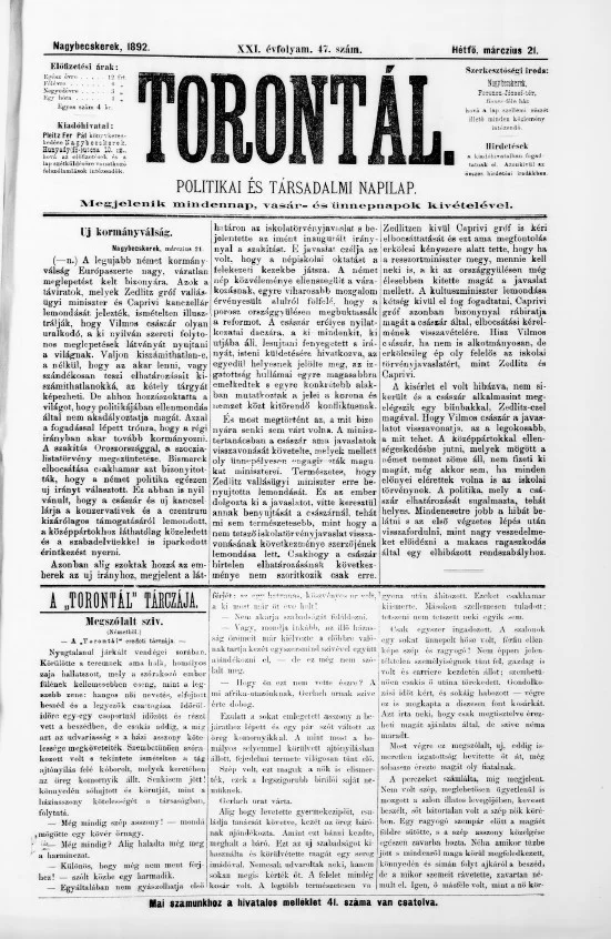 Torontál, 21. évf. 1892. március 21. 47. sz.