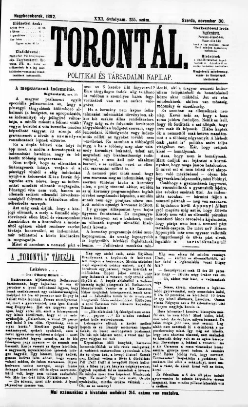 Torontál, 21. évf. 1892. november 30. 255. sz.