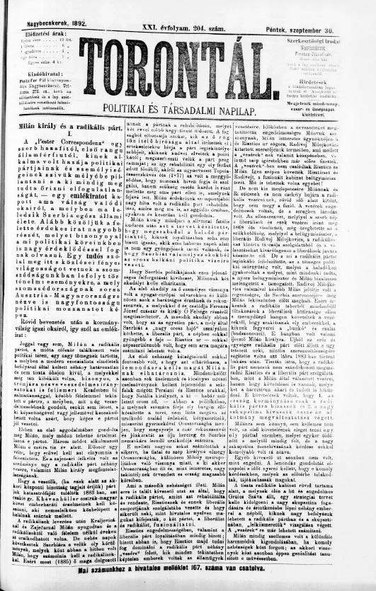 Torontál, 21. évf. 1892. szeptember 30. 204. sz.