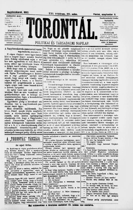 Torontál, 21. évf. 1892. szeptember 9. 186. sz.