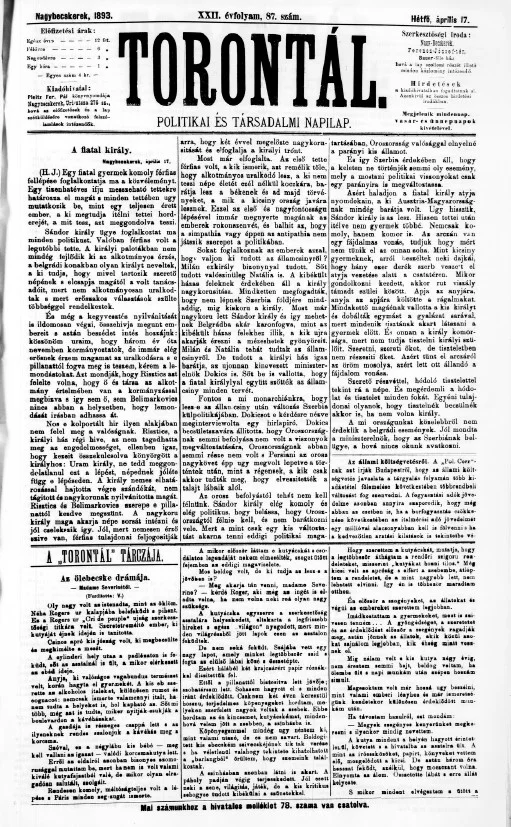 Torontál, 22. évf. 1893. április 17. 87. sz.